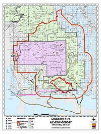Map designated interagency initial attack responsibility area for the IMT managing the Distillery Fire, the Castro Fire, and the Chimenea Wildland Fire Use Fire. Credit: Eastern Area IMT.